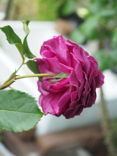いよいよバラの開花も秒読み段階。ワクワクして朝5時前に起きてしまいました。カメラを片手に庭に飛び出します。 これはドイツ コルデス社のカフェ。花弁の数が少ないので細い形の蕾です。陽当たりの良い所に鉢を置いているのですが、鉢のサイズが大きいか…