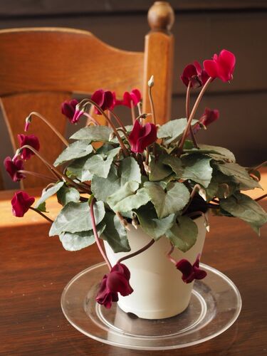 12月はシクラメンが山のようにお店へ入荷してきます。こちらの地方はシクラメン農家が割と多いので、様々な種類を見ることができてとても楽しい(最初のうちは…)。 "天使のはね" という下向きに花が咲くシクラメンがすごく好きで、2年連続で買っていたので…