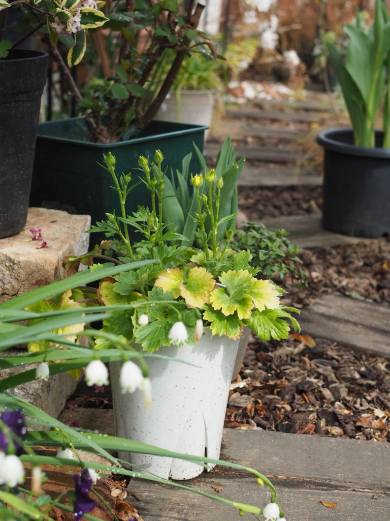 鉢植えも、地植えのチューリップにも青い蕾が上がってきている。写真を撮るのが楽しくて、数分で40枚も撮っていた。またしばらく雨続きの予報だし、連続勤務となるから、春の庭を撮り貯め。